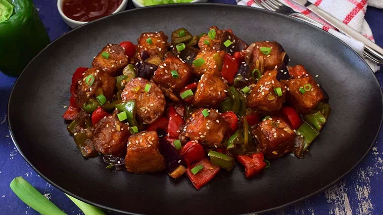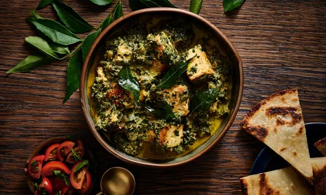 Indiase Kaas gekookt in de tandoori, afgewerkt in kerriesaus